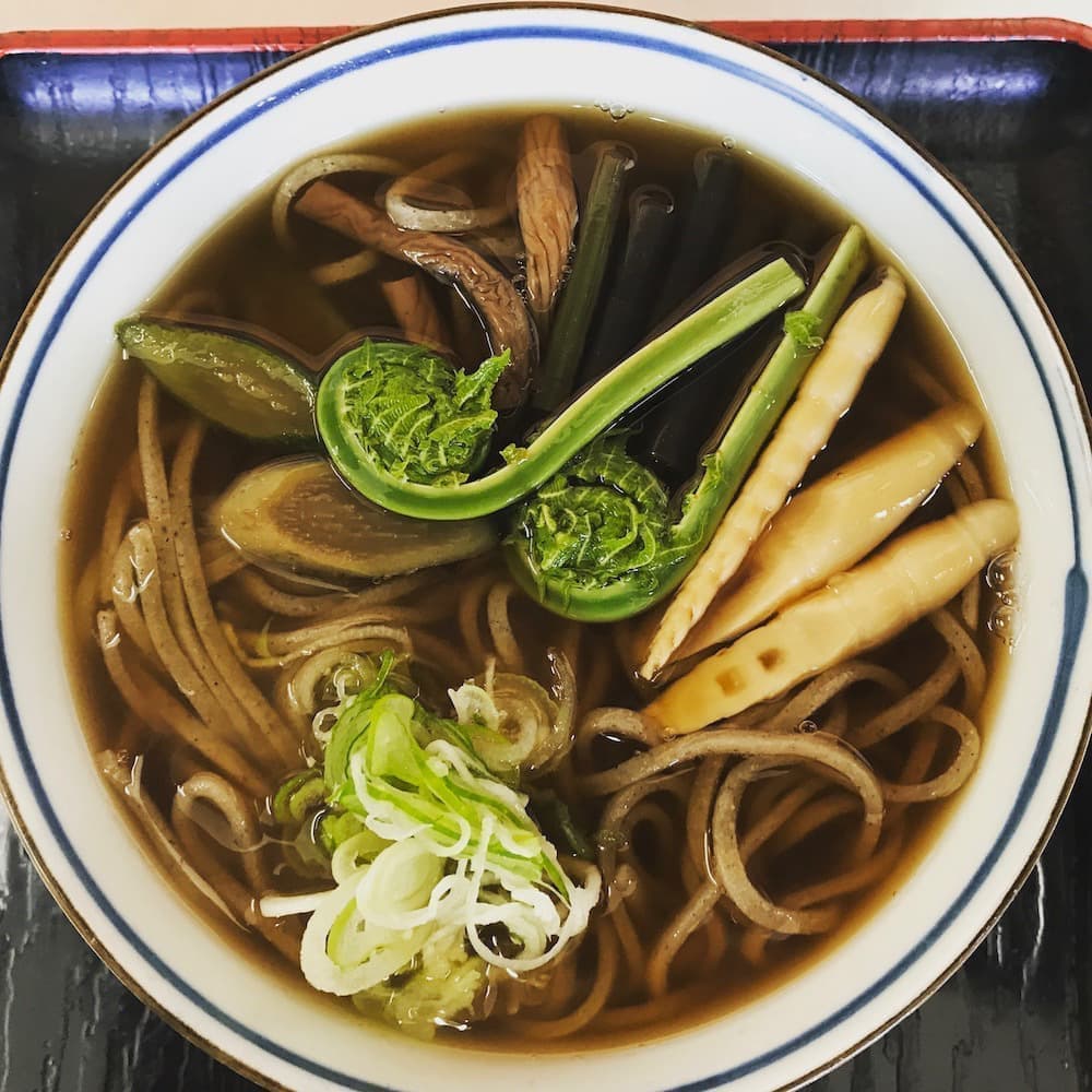 地元の山菜が楽しめる「山菜そば」