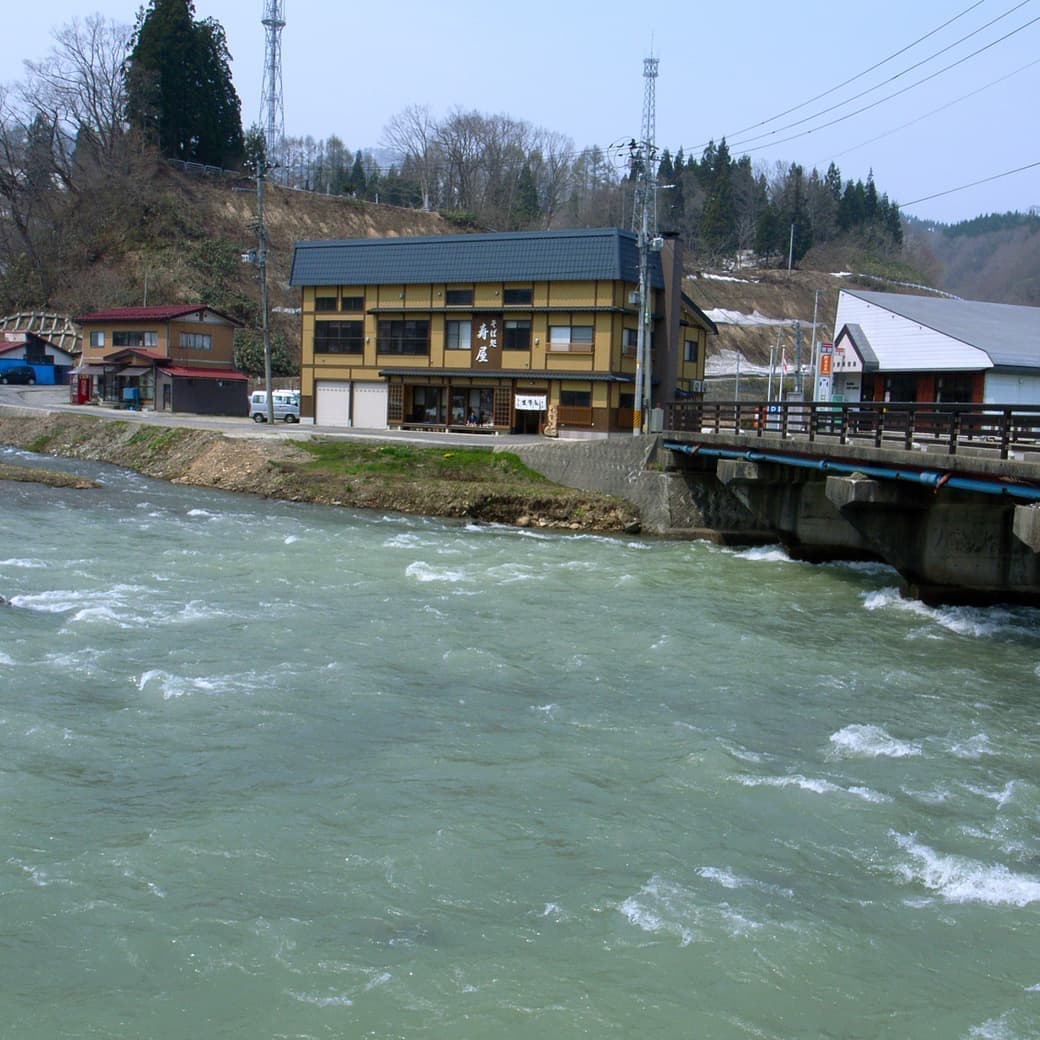 賑やかな温泉街を抜けた銅山川のほとりに寿屋はあります。