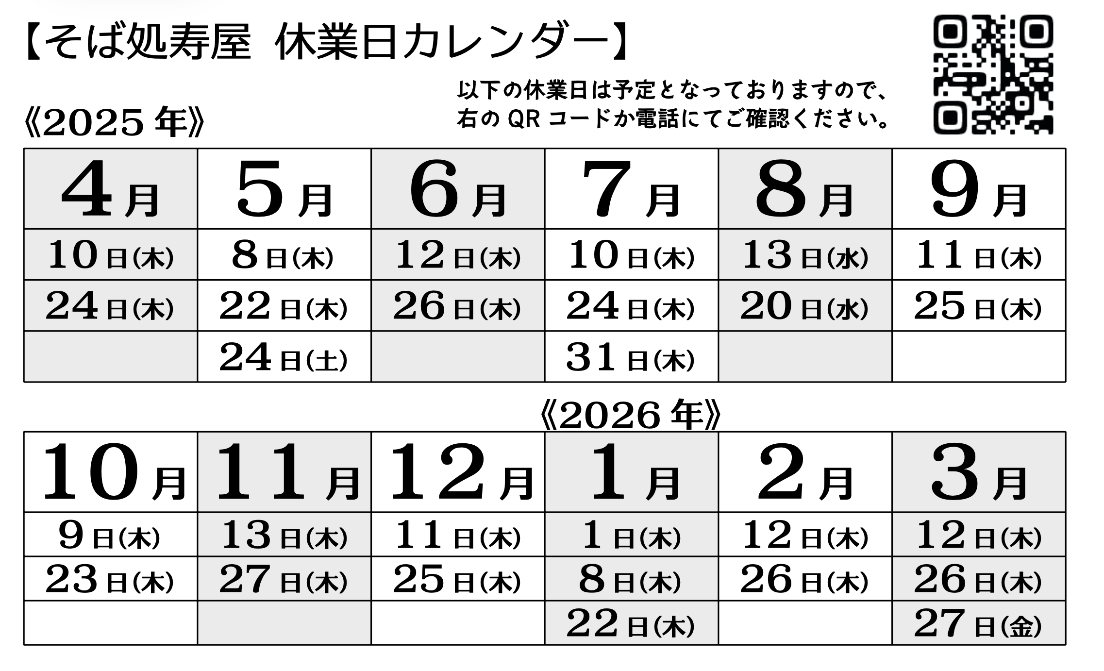 【2025年度】休業日予定カレンダー